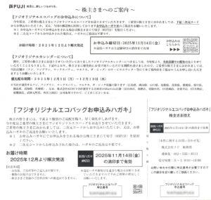 フジでは、毎年8月末の権利確定日に正式な株主優待とは別に、株主向けの 隠れ優待 が案内されることがあります。