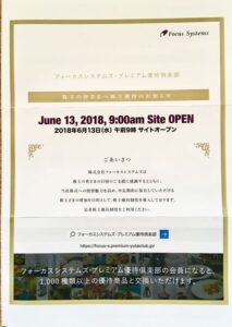 フォーカスシステムズから株主優待の案内が届きました。