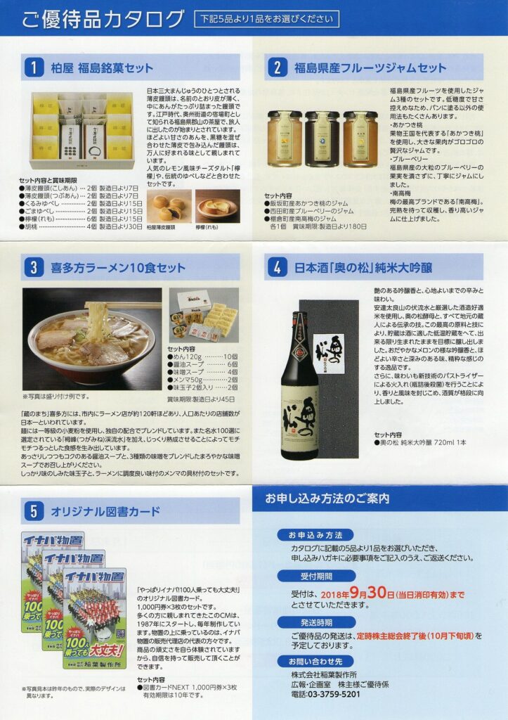 稲葉製作所から株主優待の案内が届きました。