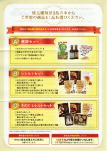 ホクトでは、毎年3月末の権利確定日に以下の内容の優待がもらえます。