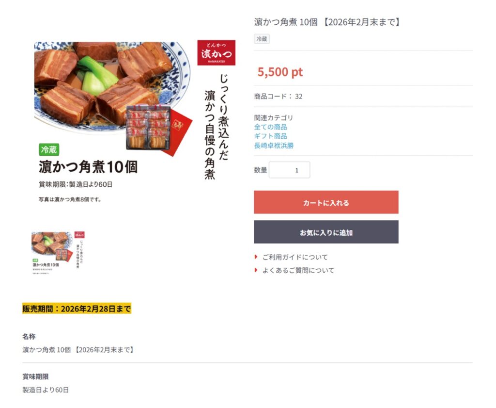 今回は、「濱かつ角煮 10個」を株主限定通販サイトで注文しました。