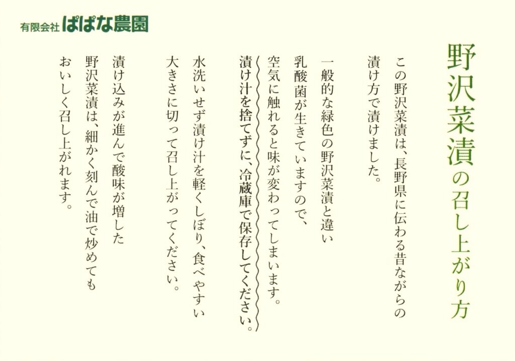 - かんてんぱぱ 野沢菜漬 500g×2袋(820円/袋)