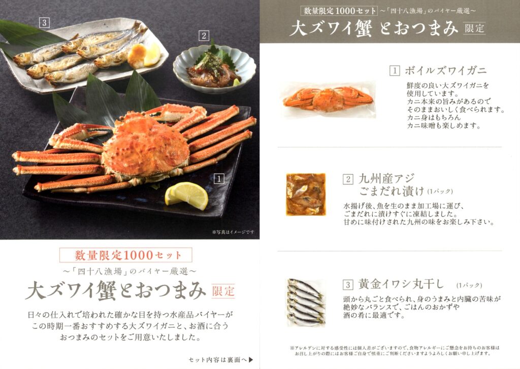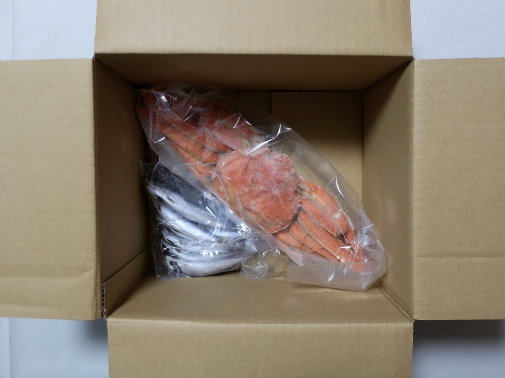 本日到着したのは「大ズワイガニとおつまみセット」です。