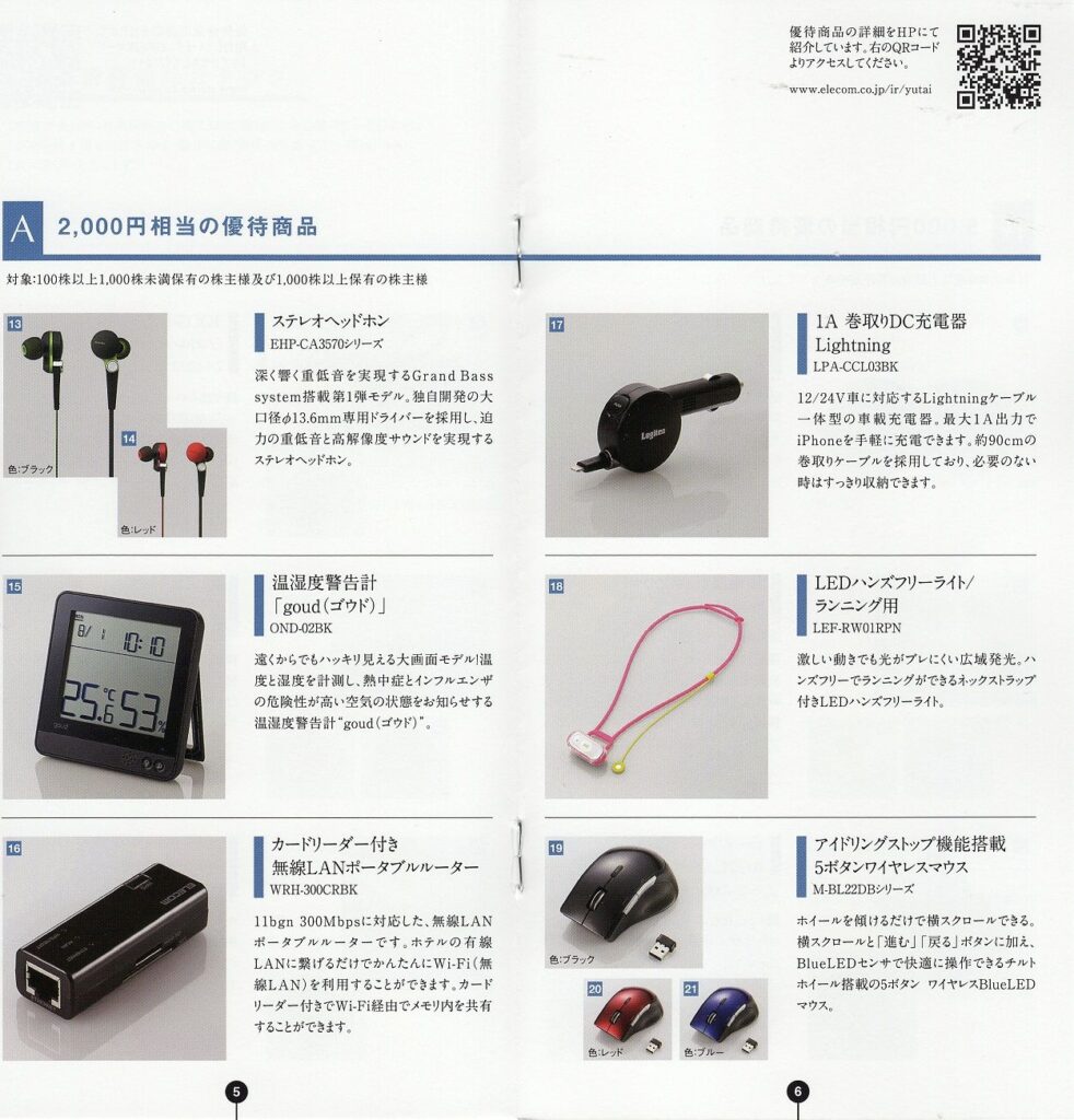 エレコムでは、毎年3月末と9月末の権利確定日に以下の内容の優待がもらえます。