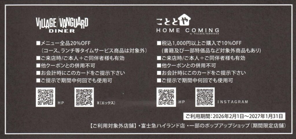 また、ハンバーガーが美味しい「ヴィレッジヴァンガードダイナー」などで使える優待カードも同封されているのが嬉しいポイント。