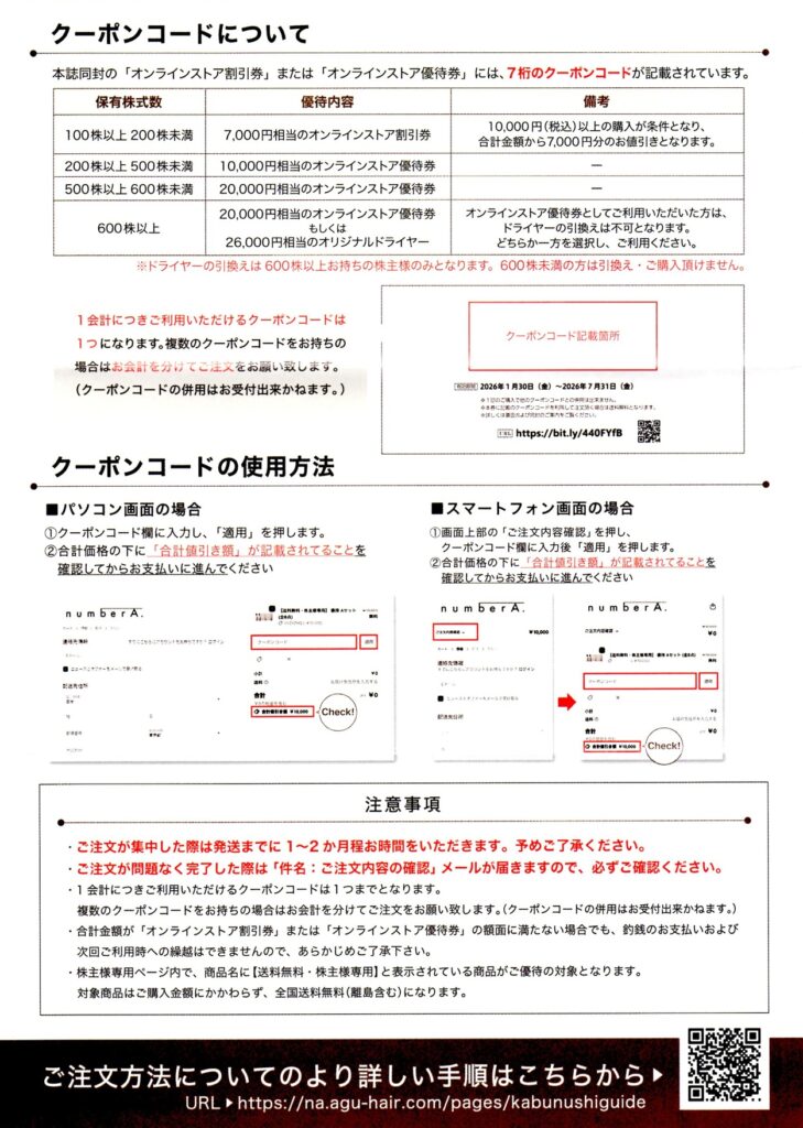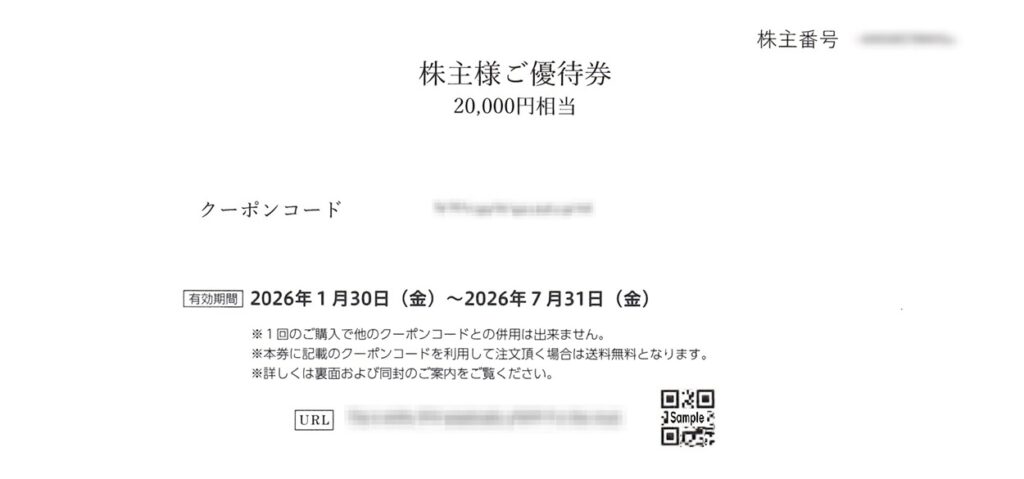 | 100株以上 | クーポンコード 7,000円分×1 |