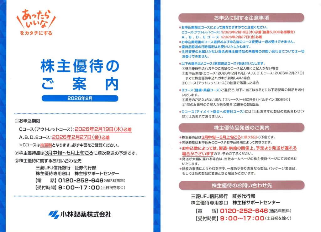 小林製薬から株主優待の案内が届きました。