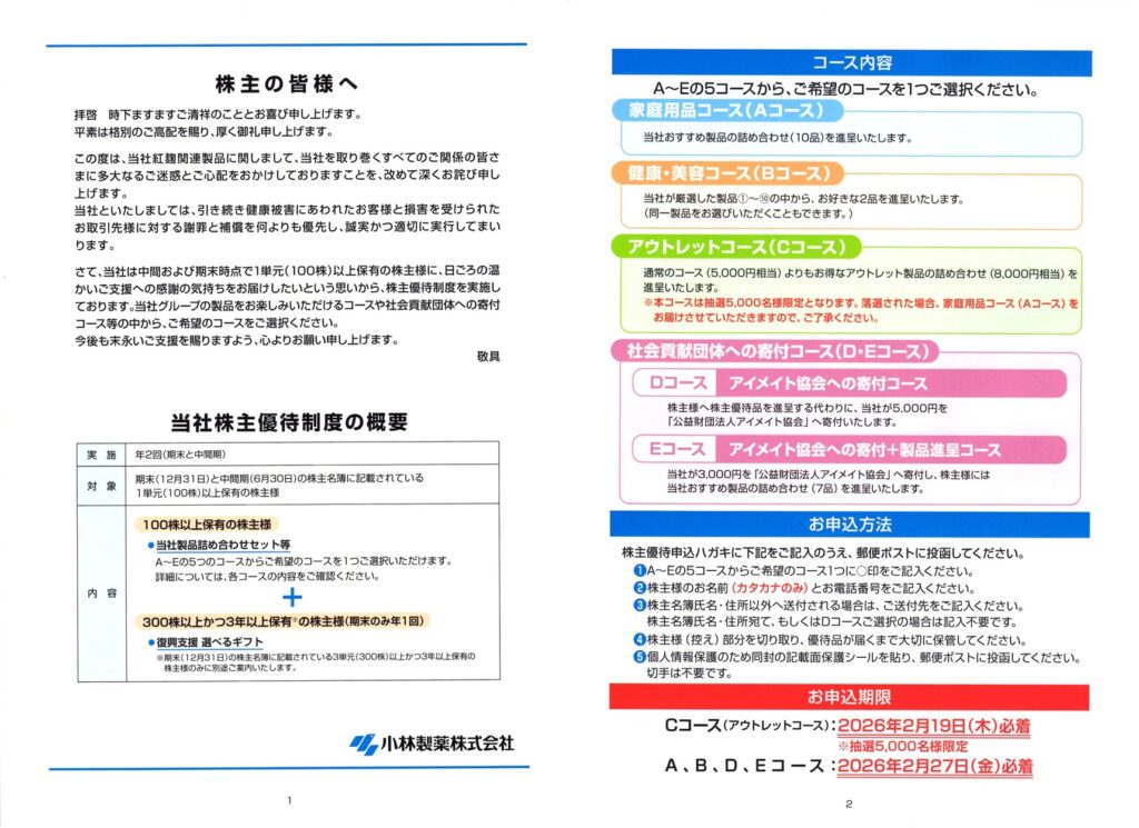 小林製薬(4967)から株主優待の案内が到着(その1)
