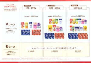 森永乳業では、毎年9月末の権利確定日に以下の内容の優待がもらえます。