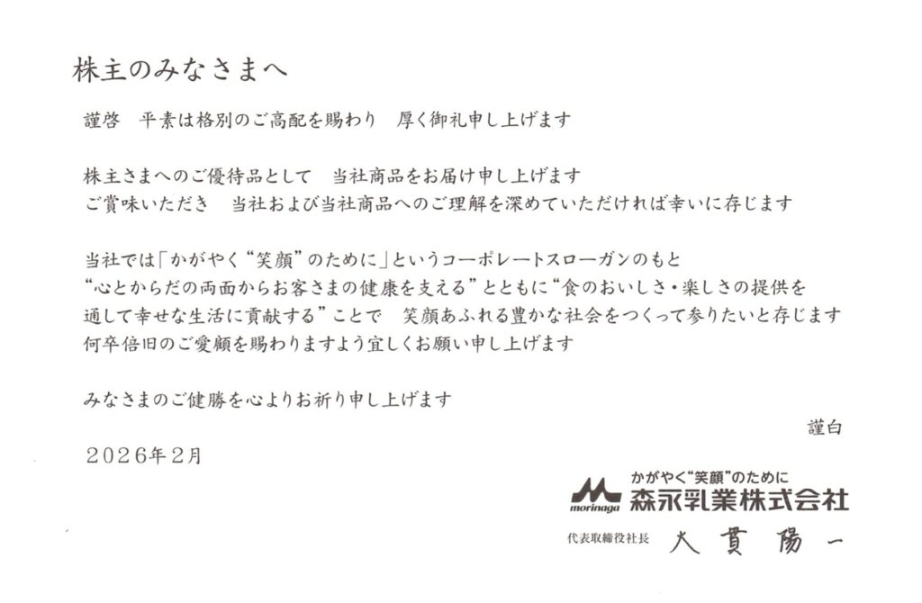 森永乳業(2264)から株主優待が到着