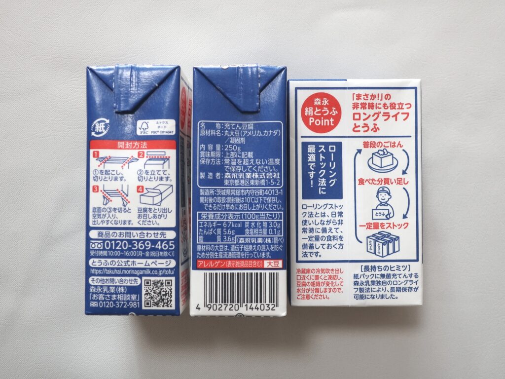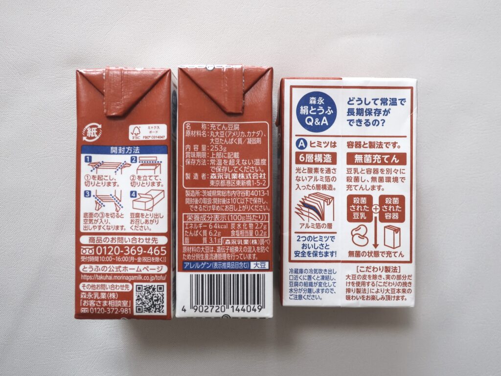 権利確定日は2022年9月末。保有株式数は100株。カタログから選んだ優待品「森永絹とうふ 250g×6丁」を写真で詳しく紹介します。