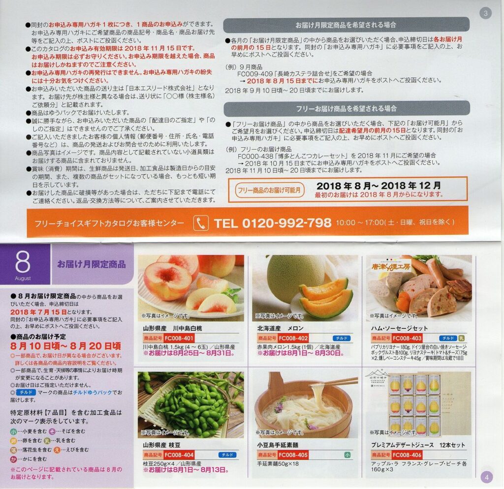 優待案内(カタログ)の詳細