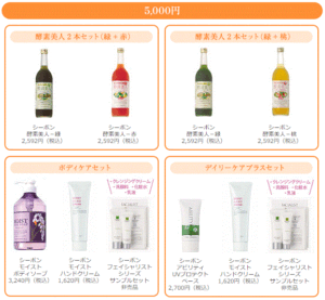 シーボンでは、毎年3月末の権利確定日に以下の内容の優待がもらえます。