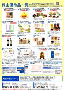 | 100株以上 | 2,000円相当の信州特産品 から1つ選択 |
