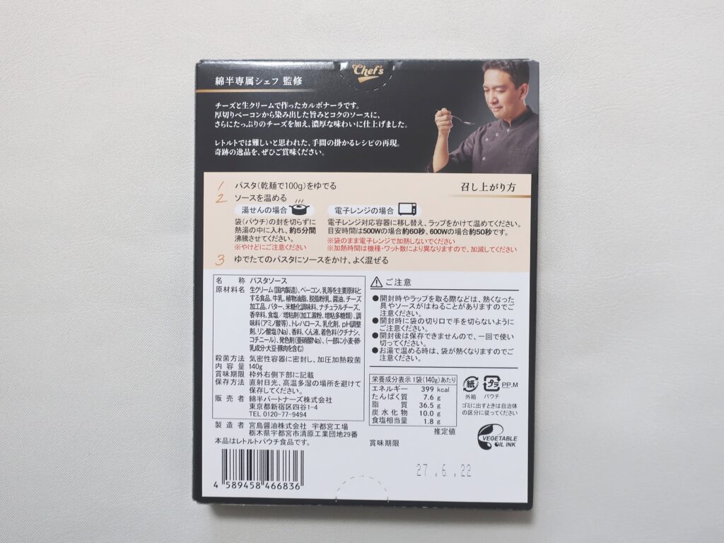 - 社長に内緒でたっぷりチーズで濃くしたカルボナーラ 140g(366円)