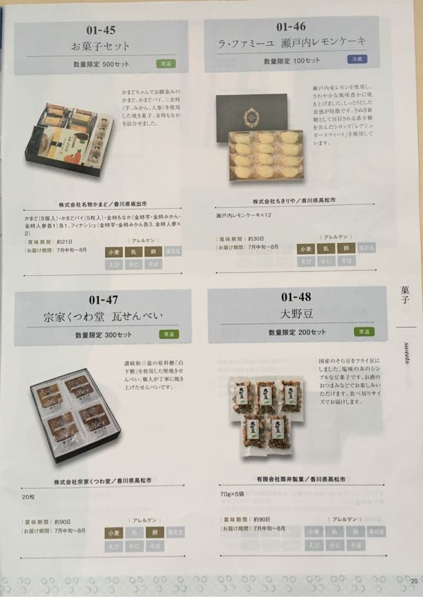 1,000株なので「2,500円相当の香川県特産品」の中から選択可能です。