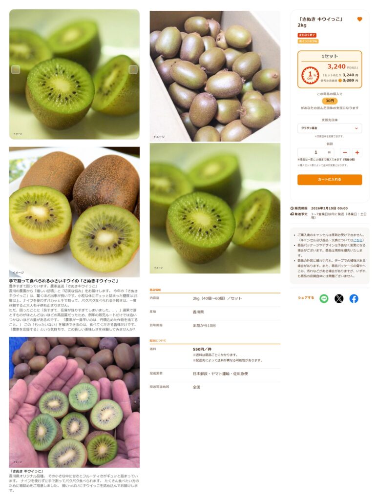 今回は、「さぬき キウイっこ 2kg」を購入。