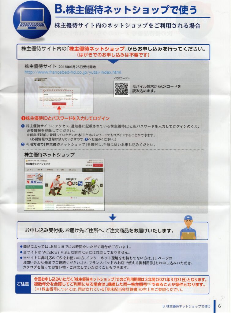 今回は、高品質なベッドや福祉用具のレンタルでおなじみのフランスベッドホールディングス(7840)から届いた優待案内を紹介します。