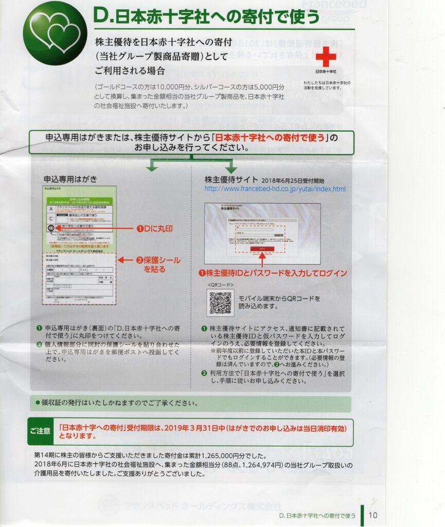 フランスベッドホールディングスから株主優待の案内が届きました。