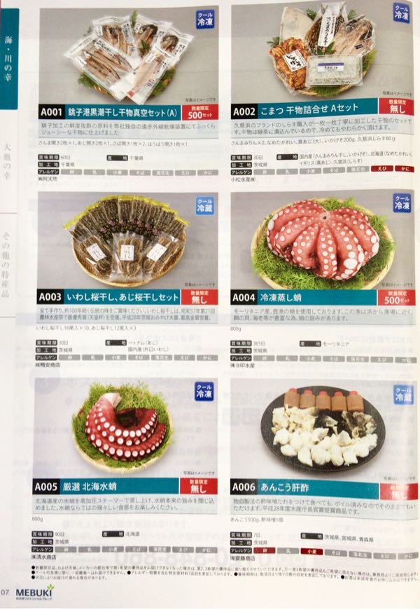 カタログには221品掲載されていましたが、今回は第一希望を「モーリタニア産の冷凍蒸し蛸 800g」にしました。