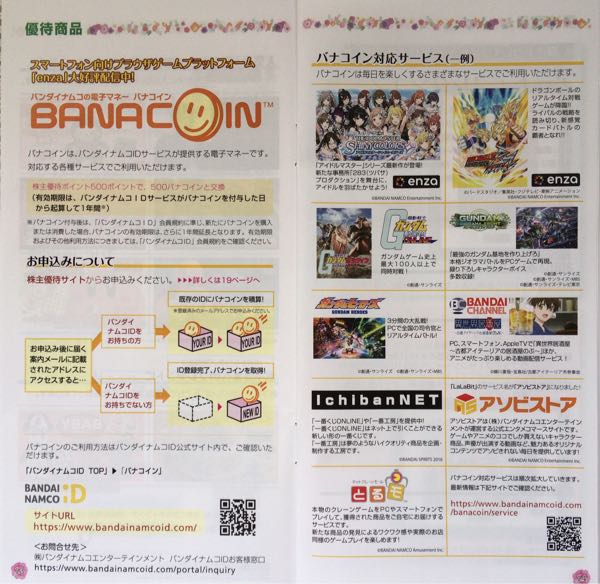 今回は、エンターテインメント業界大手のバンダイナムコホールディングス(7832)から届いた優待案内を紹介します。