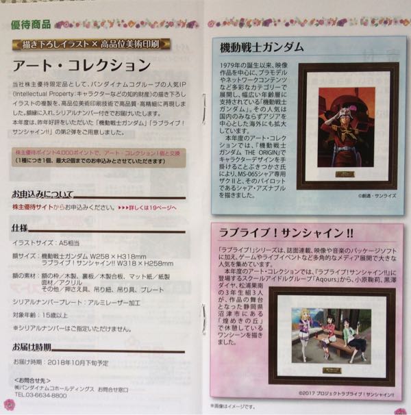 バンダイナムコホールディングス(7832)から株主優待が到着