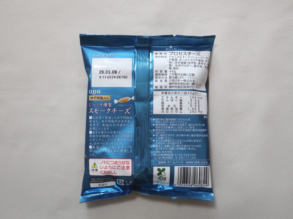 - じっくり燻製スモークチーズ ゆず胡椒入り 46g(240円)