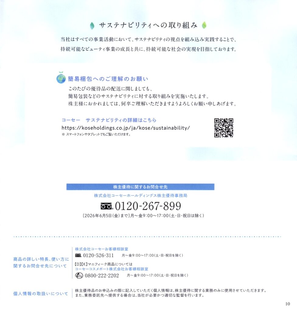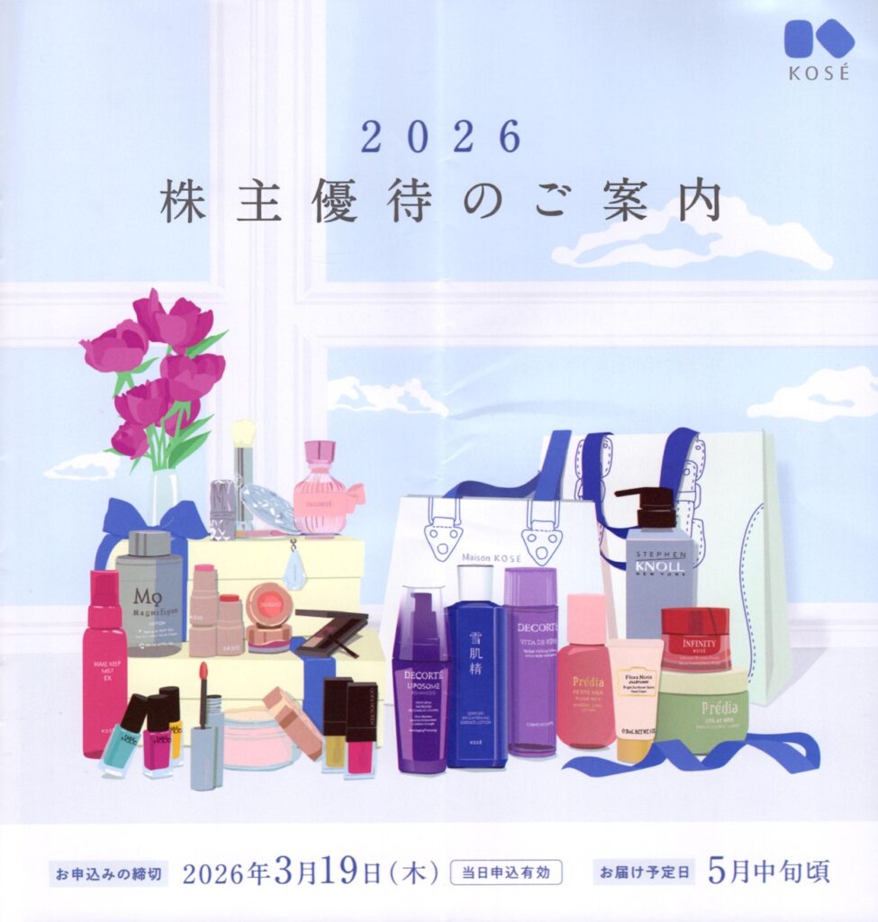 今回は、雪肌精やコスメデコルテでおなじみのコーセーホールディングス(4922)から届いた優待案内を紹介します。