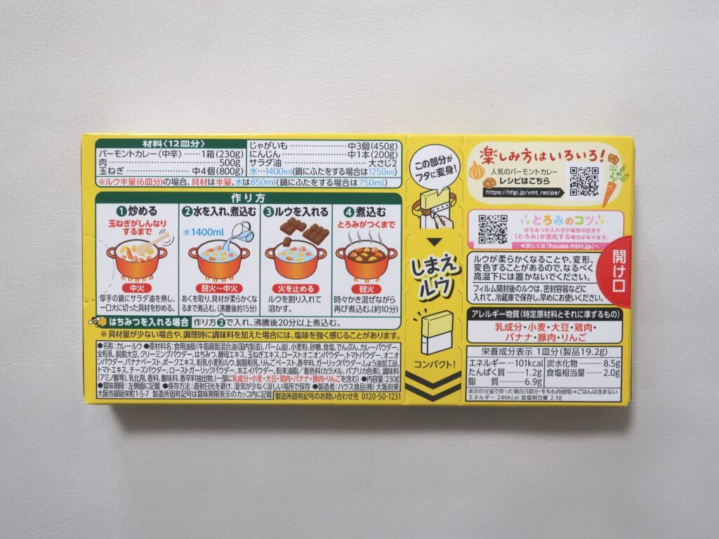 - バーモントカレー 中辛 12皿分 230g(372円)