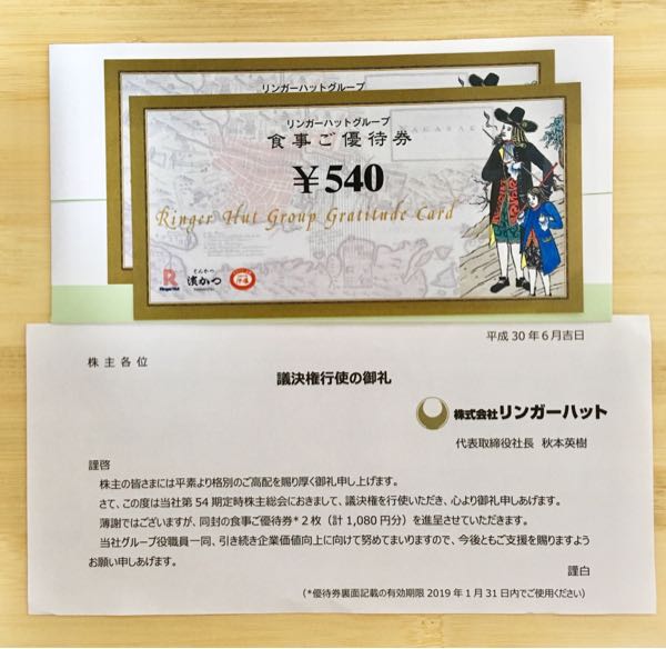 リンガーハットから議決権行使のお礼が届きました。