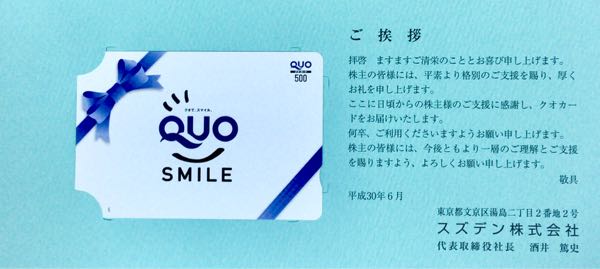 100株(3年未満)なので「500円分のクオカード」でした。