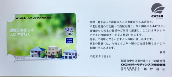 OCHIホールディングスから株主優待が届きました。