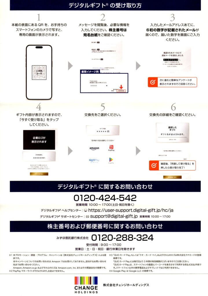 チェンジホールディングス(3962)から株主優待が到着|300株(1年未満)でデジタルギフト7,500円分