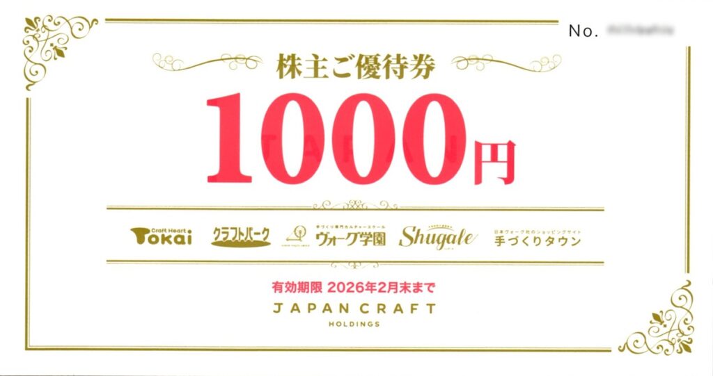 ジャパンクラフトホールディングス(7135)から株主優待が到着