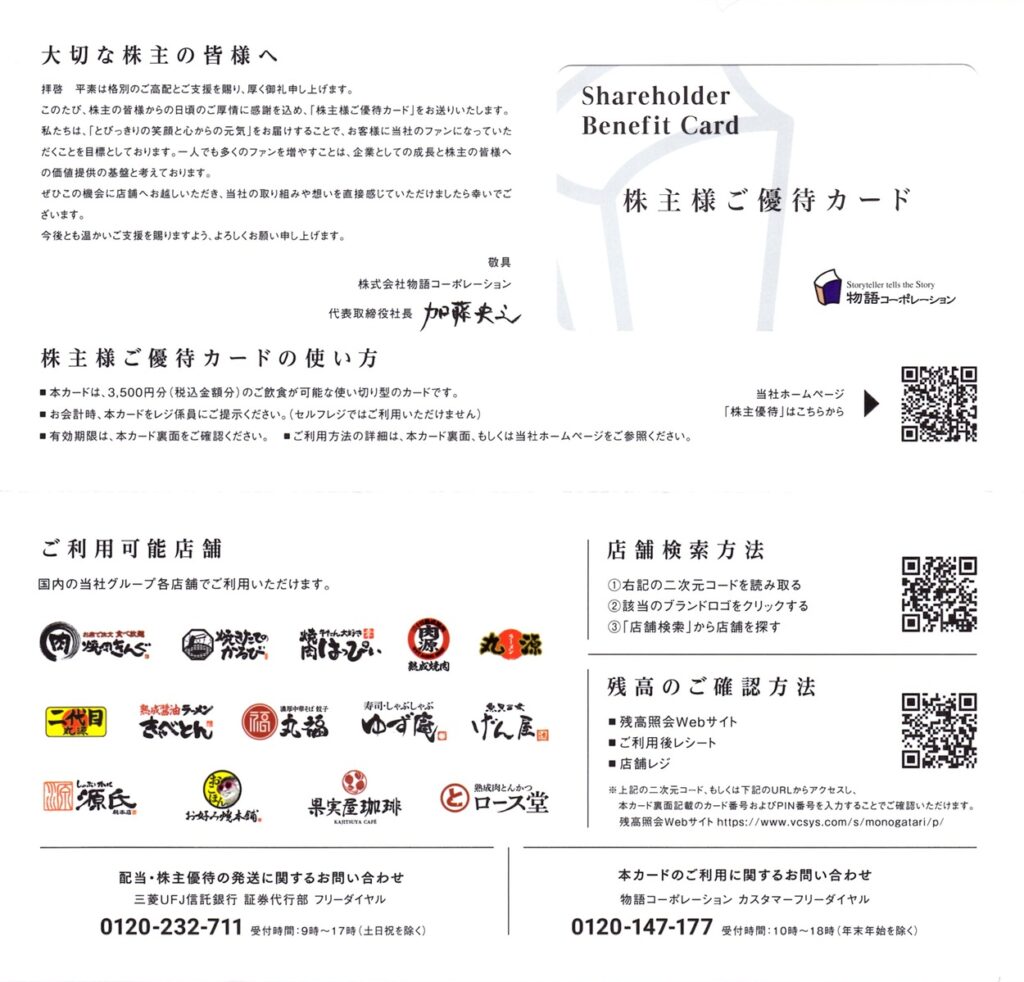 物語コーポレーション(3097)から株主優待が到着